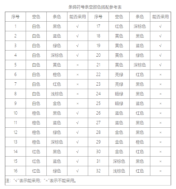 条码符号条空颜色搭配参考表