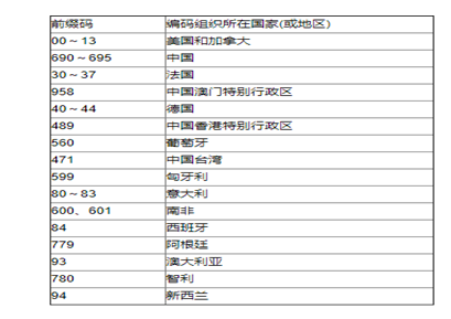前缀码表示国家或地区,为了便于各个国家或地区对商品的管理,由国际物品编码协会统一分配。以下为一些国家或地区的前缀代码。